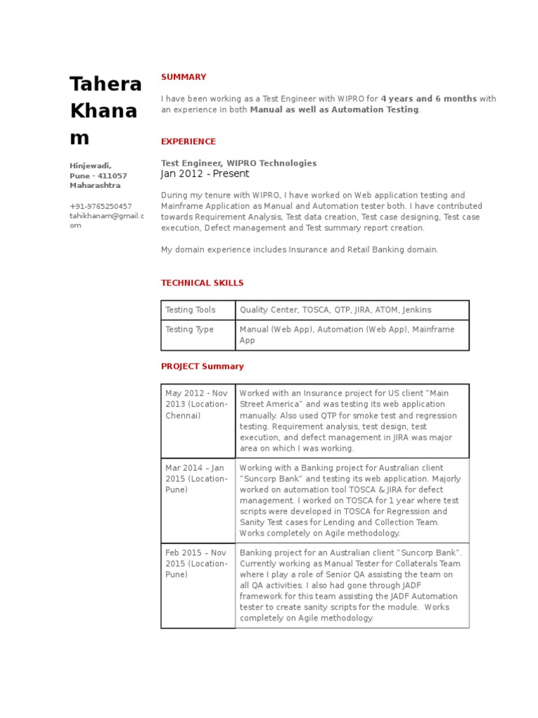 Manual Testing Cv